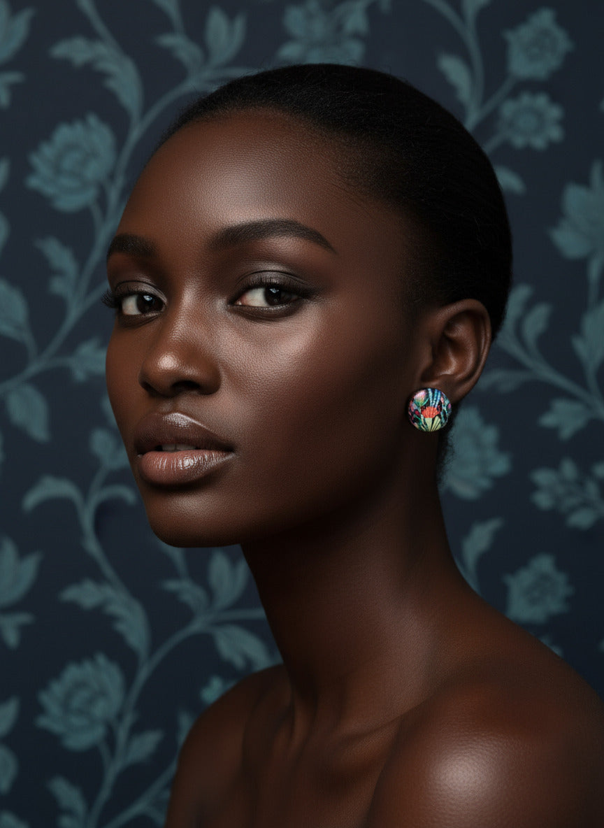 Wood and resin studs featuring original watercolour artwork. The artwork featured is inspired by the unique fynbos growing in South-Africa. Light and comfortable for everyday wear, with stainless steel nickle-free (non allergenic) posts.