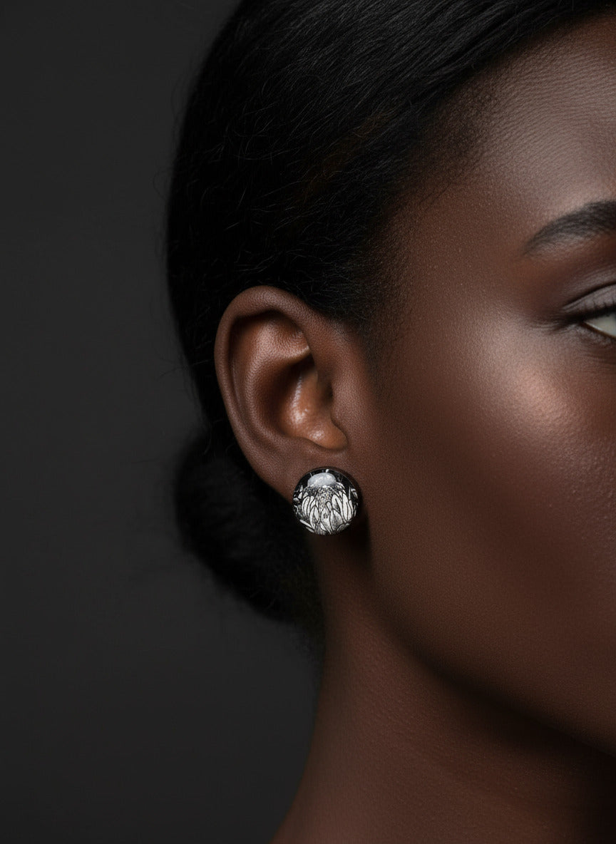 Wood and resin studs featuring original watercolour artwork. The artwork featured is inspired by the unique fynbos growing in South-Africa. Light and comfortable for everyday wear, with stainless steel nickle-free (non allergenic) posts.