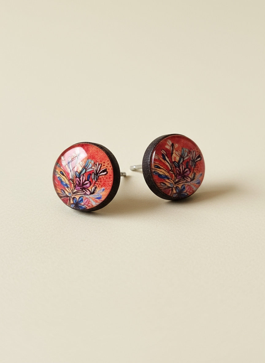 Wood and resin studs featuring original watercolour artwork. The artwork featured is inspired by the unique fynbos growing in South-Africa. Light and comfortable for everyday wear, with stainless steel nickle-free (non allergenic) posts.